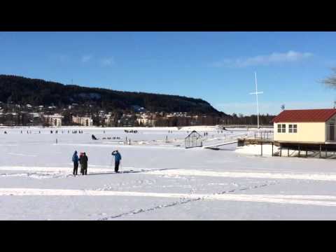 Däremellan hann vi iallafall med att gå ut lite till i dagsljuset! Då var det alldeles fullt med folk nere vid sjön! De åkte på skridsko-banan, lekt i snöborgen och promenerade över isen. Det fanns också ett hundspann där, och häst o vagn!